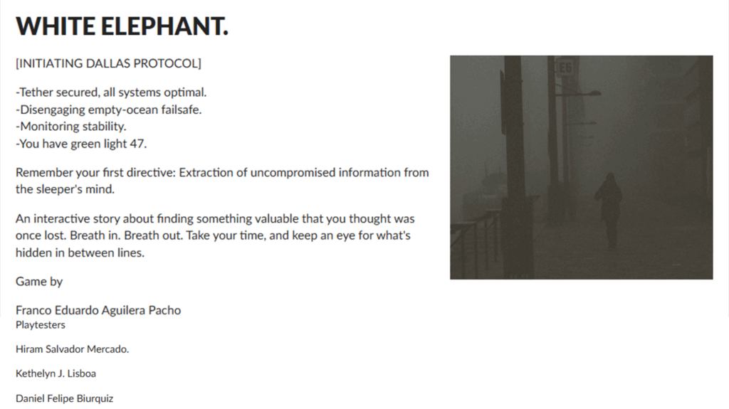 The White Elephant: Interactive Fiction