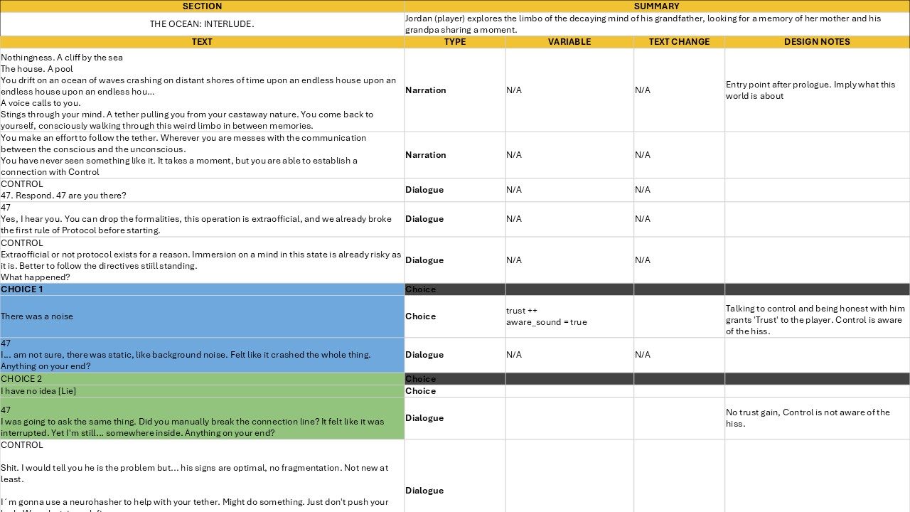 - Role: Narrative Designer, Producer. Env. Artist.